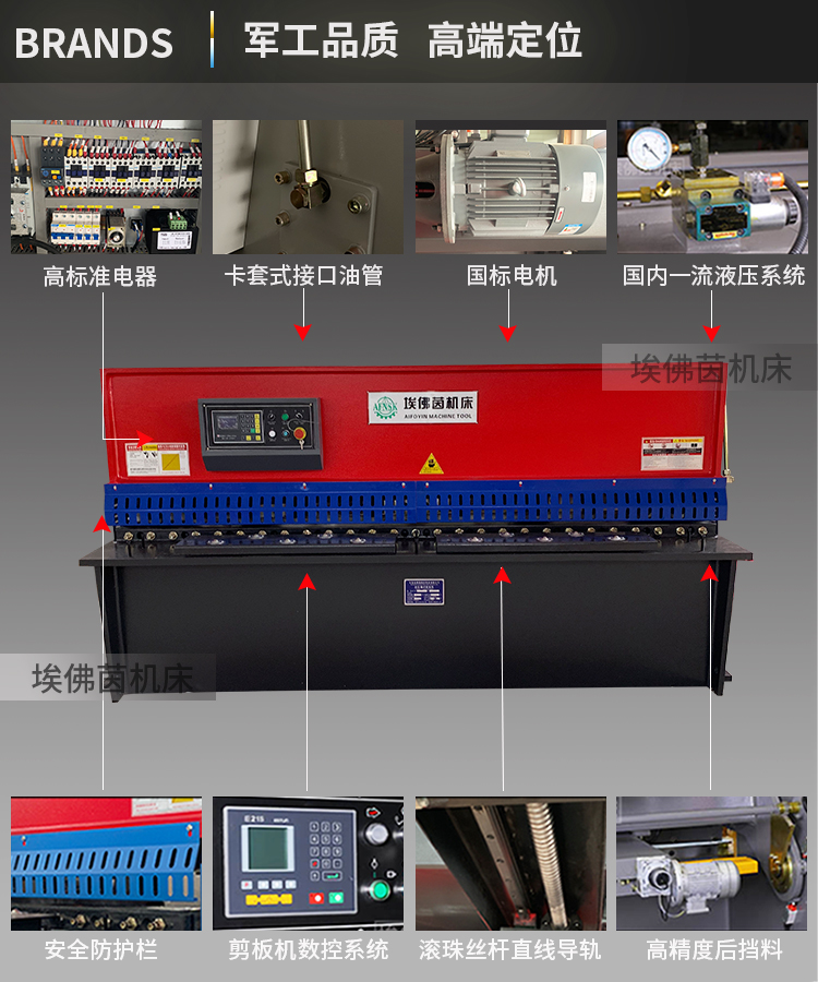 QC12K-4X2500 液壓擺式數(shù)控剪板機標配為MD11/e21S數(shù)控系統(tǒng),同時可選配200PS數(shù)控系統(tǒng),該設備穩(wěn)定可靠,性價比高;機架整體焊接,堅固耐用;液壓傳動,擺式刀架;使用品牌液壓系統(tǒng),可靠穩(wěn)定;機器上以及腳踏開關(guān)裝有急停開關(guān),確保人員安全。